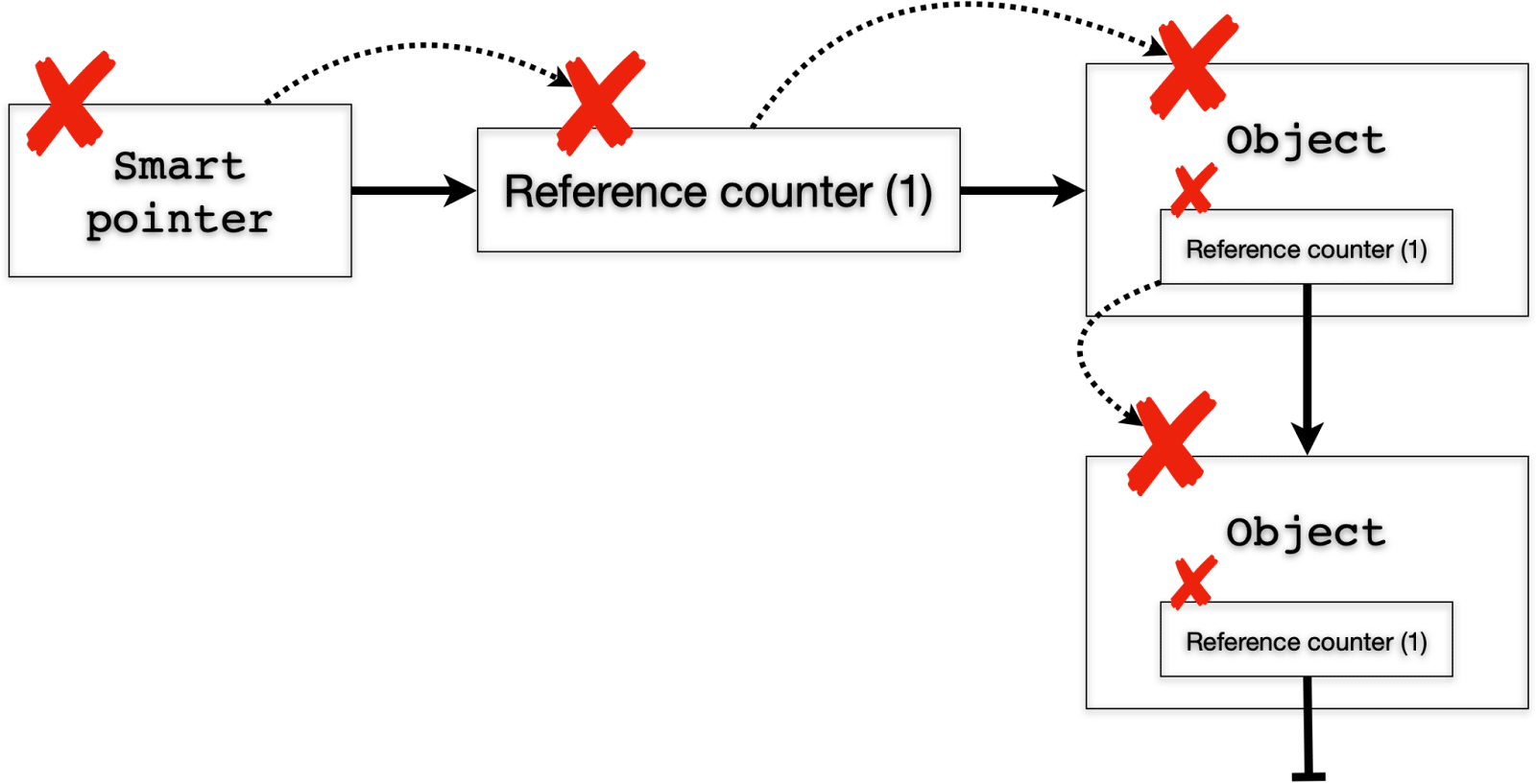 但是,如果所指对象的生命周期不是那么可预测的,会发生什么呢?在多线程或异步程序中,一个进程可能会设置一个对象,另一个进程可能会填充它,第三个进程可能会将其转发到外部端点。只有当每个进程都已完成对象时,才能将其删除。
